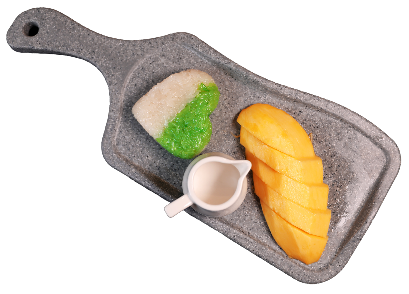 Mango sticky rice is a traditional Thai dessert made with glutinous rice, fresh imported honey Thai mango and Thai coconut milk involving sticky rice which are sweetened with palm sugar or jaggery combined with coconut milk. It's a must-eat dessert back in Bangkok.