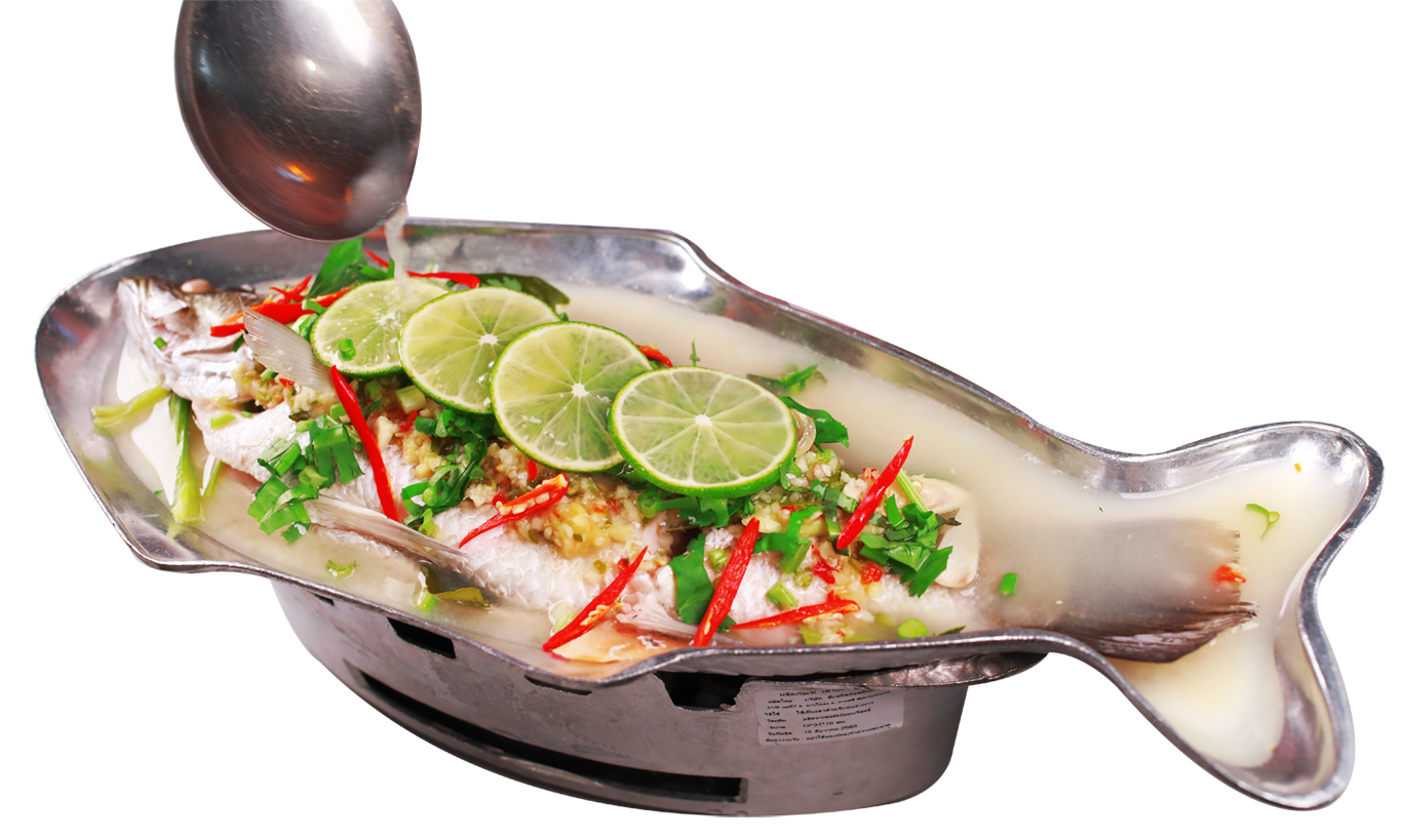 Pla kapong neung manao, one of the most famous dish in Thailand. We used wild caught barramundi served with our secret fragrant sauce prepared with fresh lime juice, garlic. lemongrass, cilantro and chilies. One of our chef owner's favorite dish.